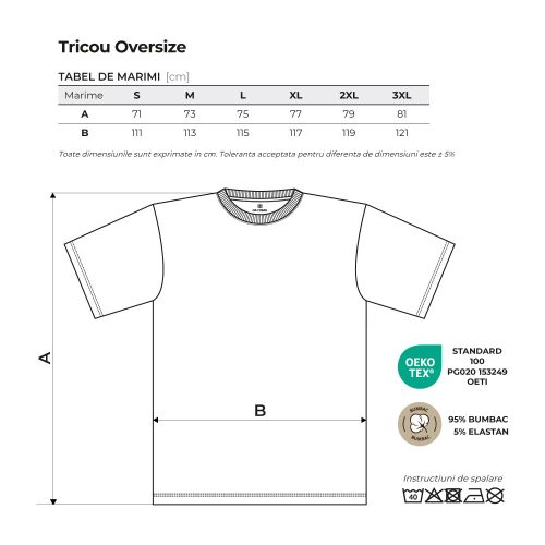 Tricoul Oversize imbina confortul suprem cu designul minimalist si rafinat specific brandului. Confectionat din 95% bumbac si 5% elastan, materialul ofera o textura moale si elastica, pastrandu-si forma impecabila la purtare.