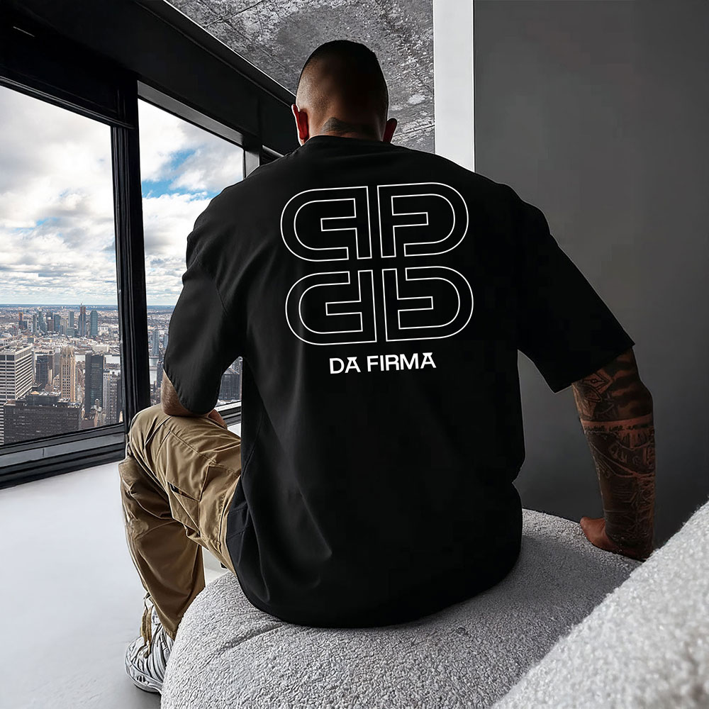 Croiala oversize, cu umeri lasati, creeaza o tinuta relaxata, iar imprimeul generos Da Firma amplasat pe spate adauga o nota puternica de caracter si identitate vizuala. Logo-ul monograma pozitionat discret la baza fata completeaza designul, pastrand echilibrul intre simplitate si atitudine.